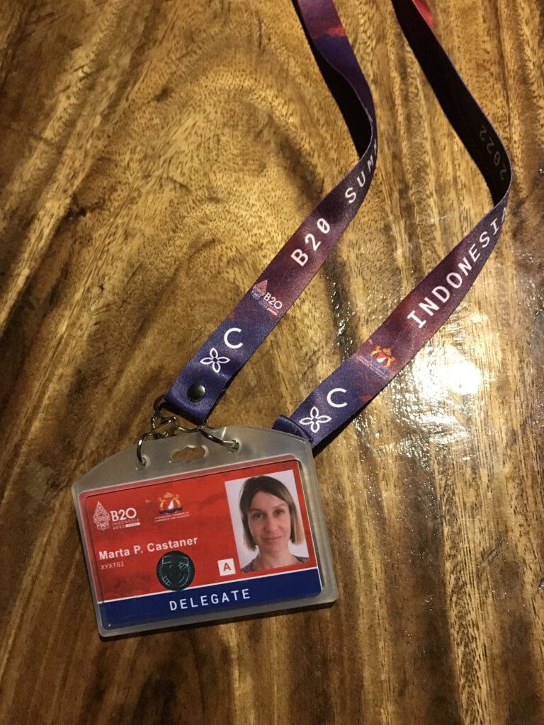 El B20, establecido en 2010, es el principal foro de diálogo entre el G20 y la comunidad empresarial global. Empresas de todo el mundo participan en este foro, cuyo propósito es proporcionar recomendaciones políticas concretas que impulsen el crecimiento económico inclusivo y sostenible. Y este año formamos parte en calidad de Delegada,